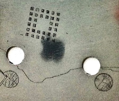 Entwurf-Ausschnitt-Coldplay-Kleiner Wagen Entwurf-Ausschnitt-Coldplay-Kleiner Wagen Zinkplatte nach erstem Ätzbad