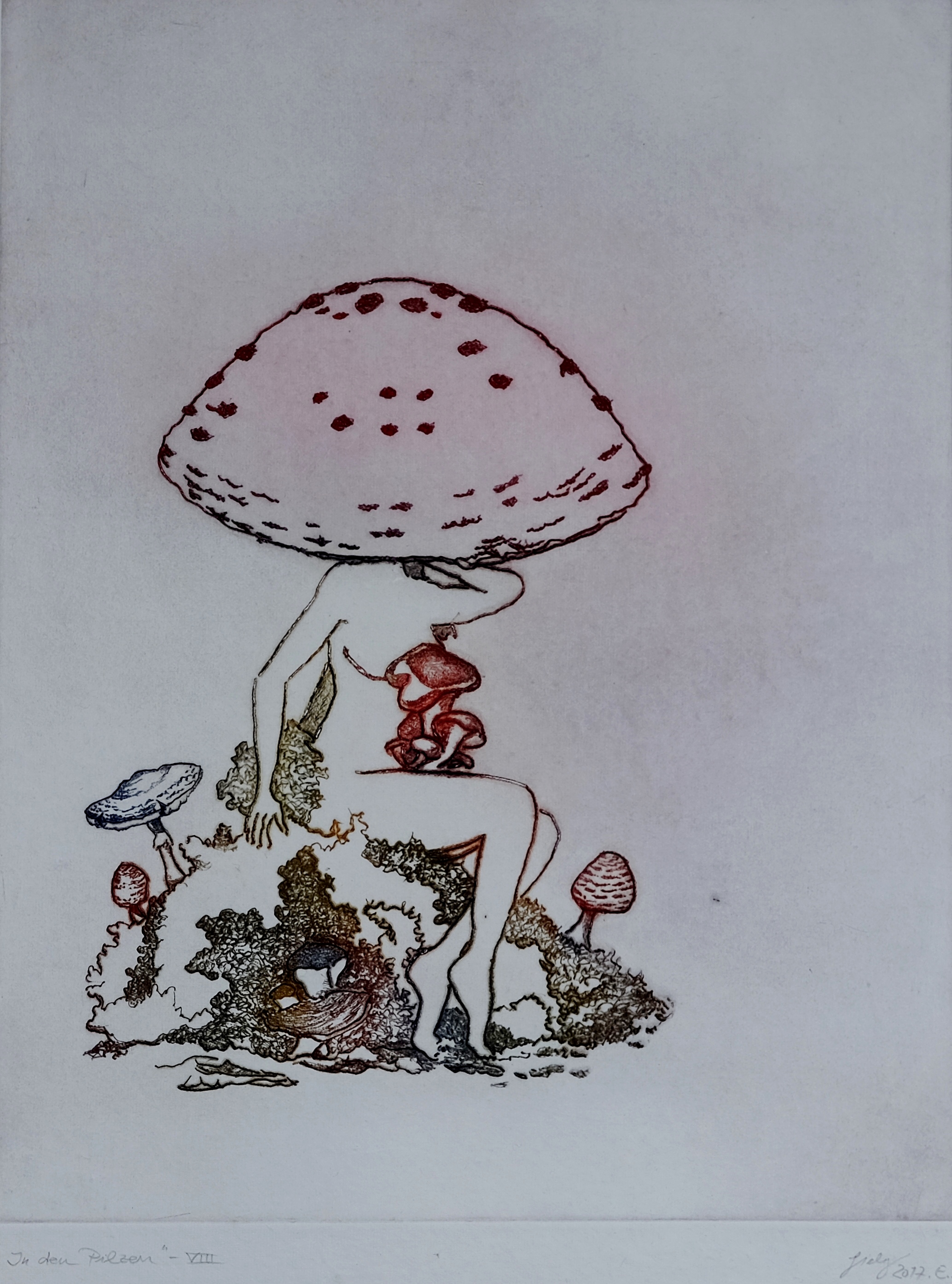 In den Pilzen-VIII In den Pilzen – VIII Druckgrafik, E.A. 2017, Kaltnadelradierung, Tiefdruck, Druckbereich 35 x 45 cm, Aluplatte, handgeschöpftes Büttenpapier 42 x 60 cm Gefällt mir Wird geladen …