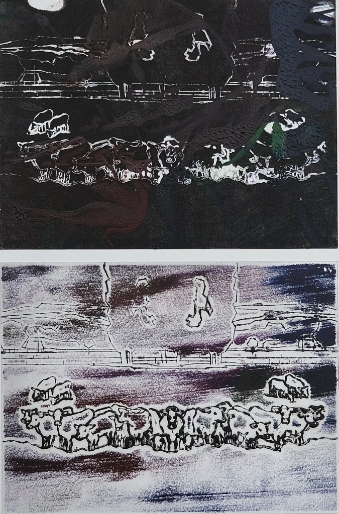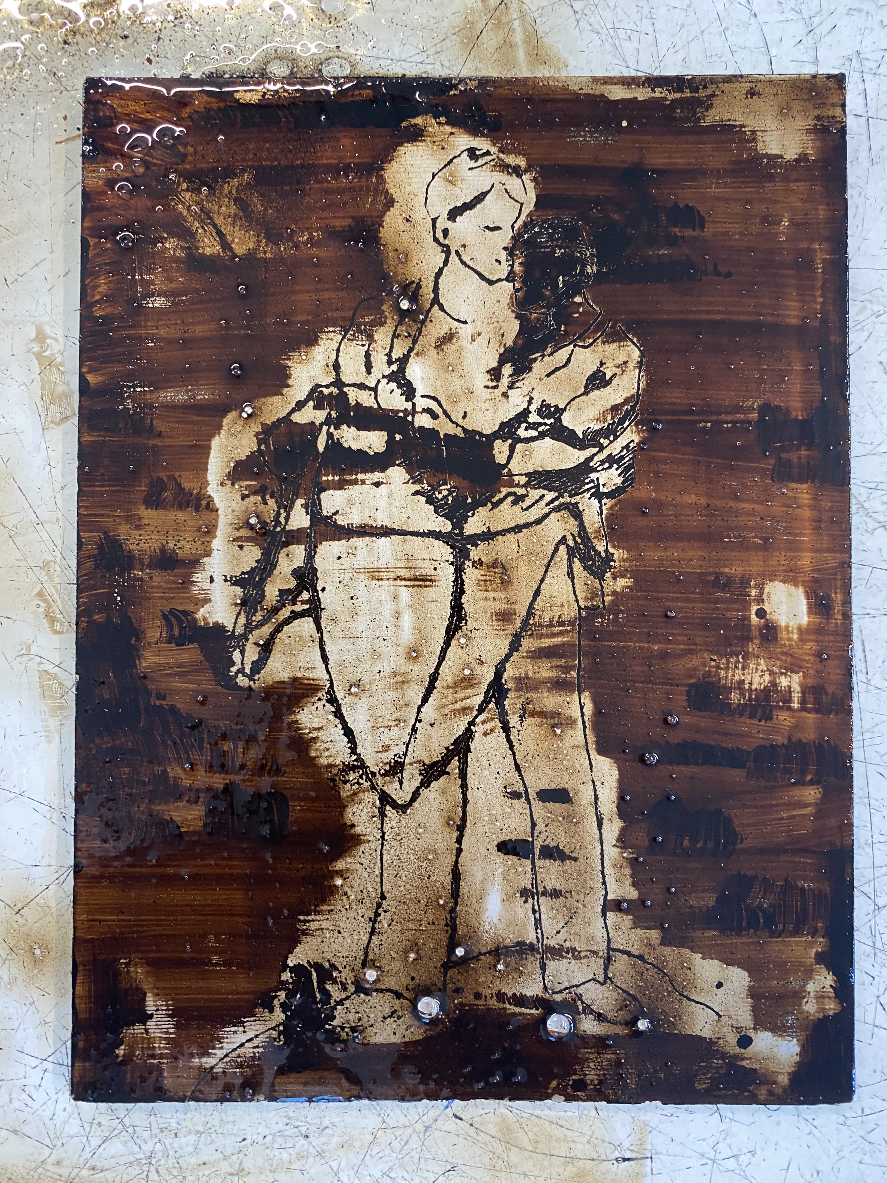 Serie "Coldplay" Radierung, Aquatinta, Reservage, Vernis mou Aluplatten in Bearbeitung