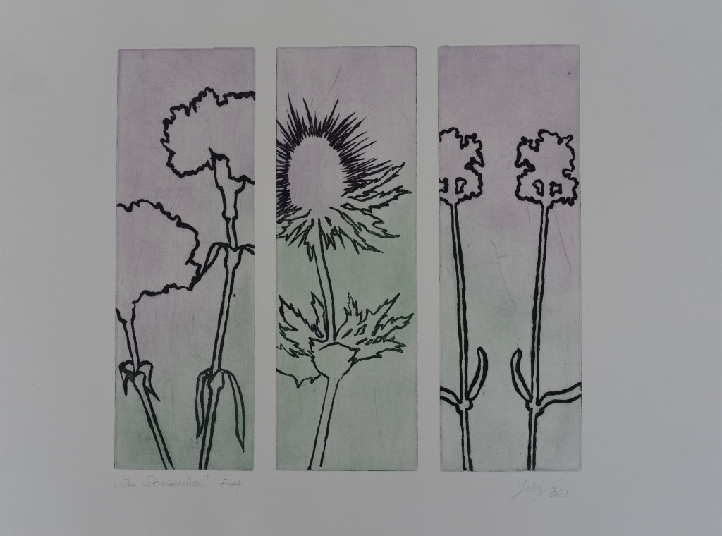 Serie " Blumen" Radierung, Reservage Druckgrafik