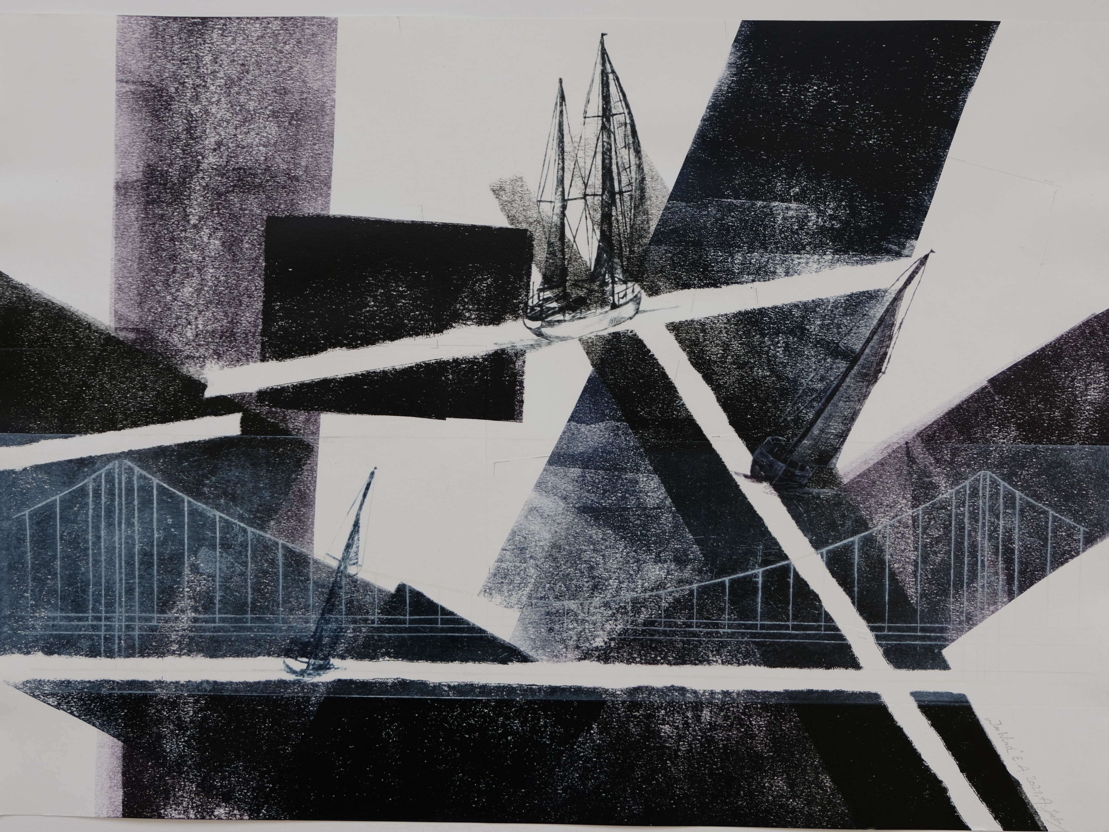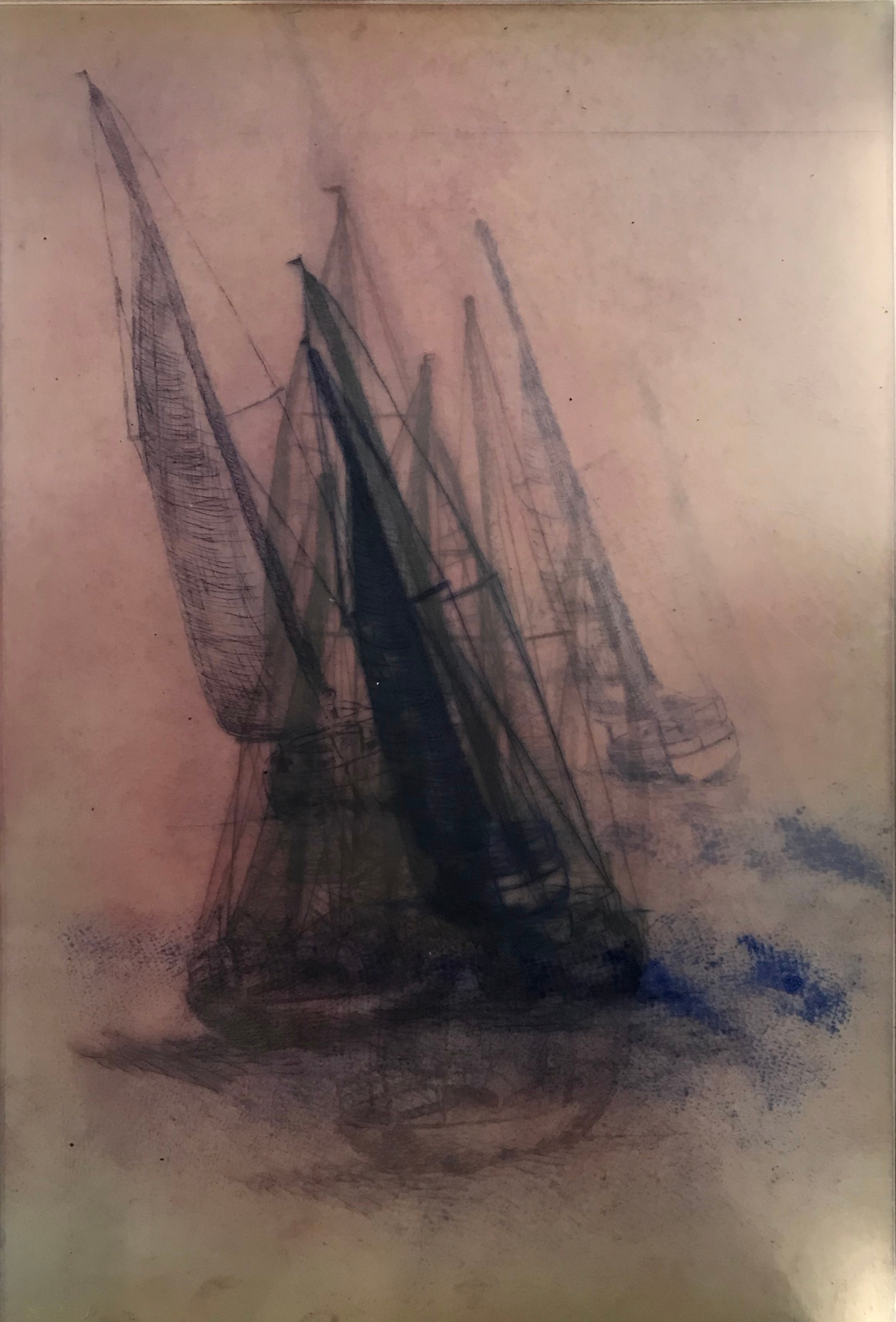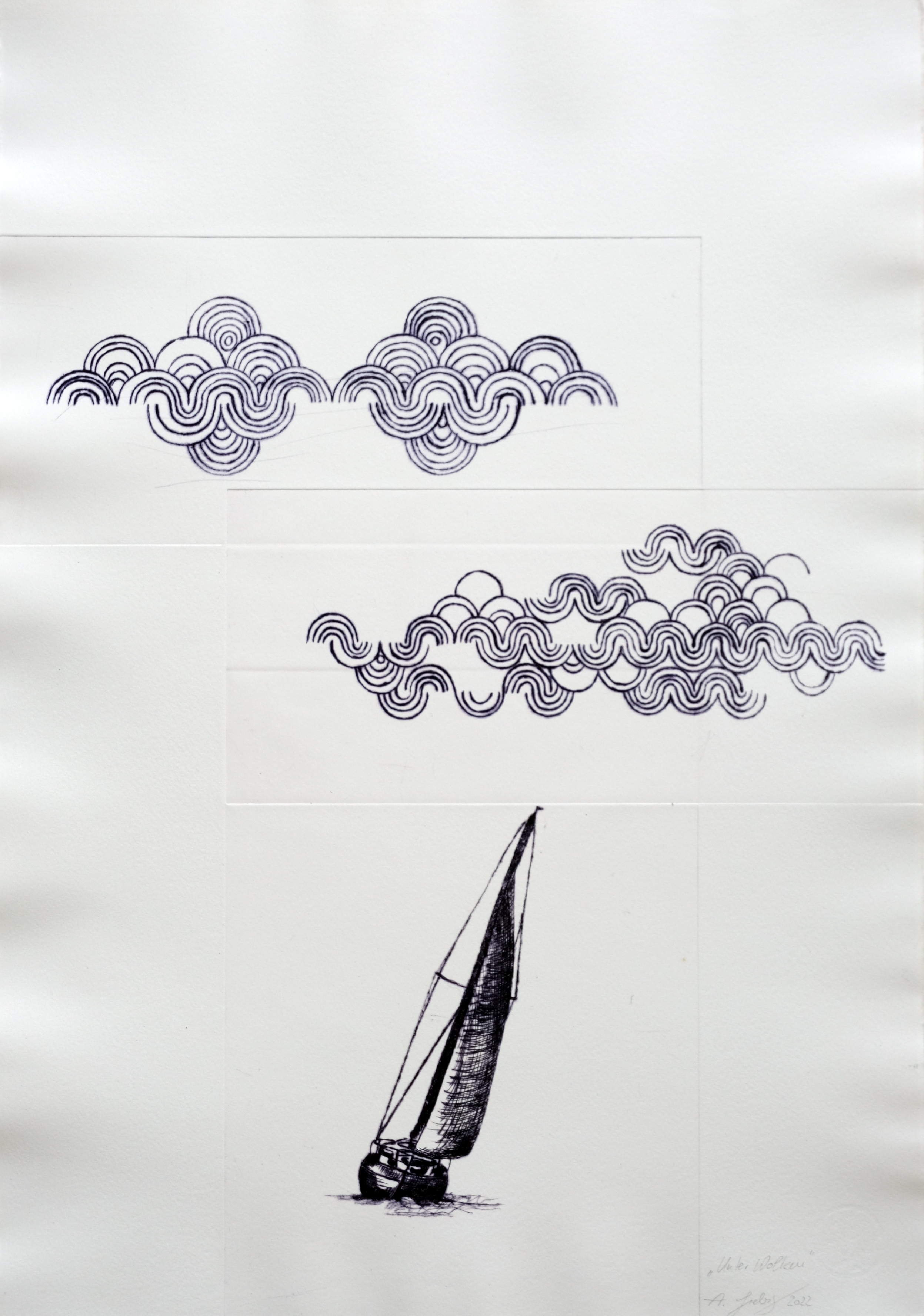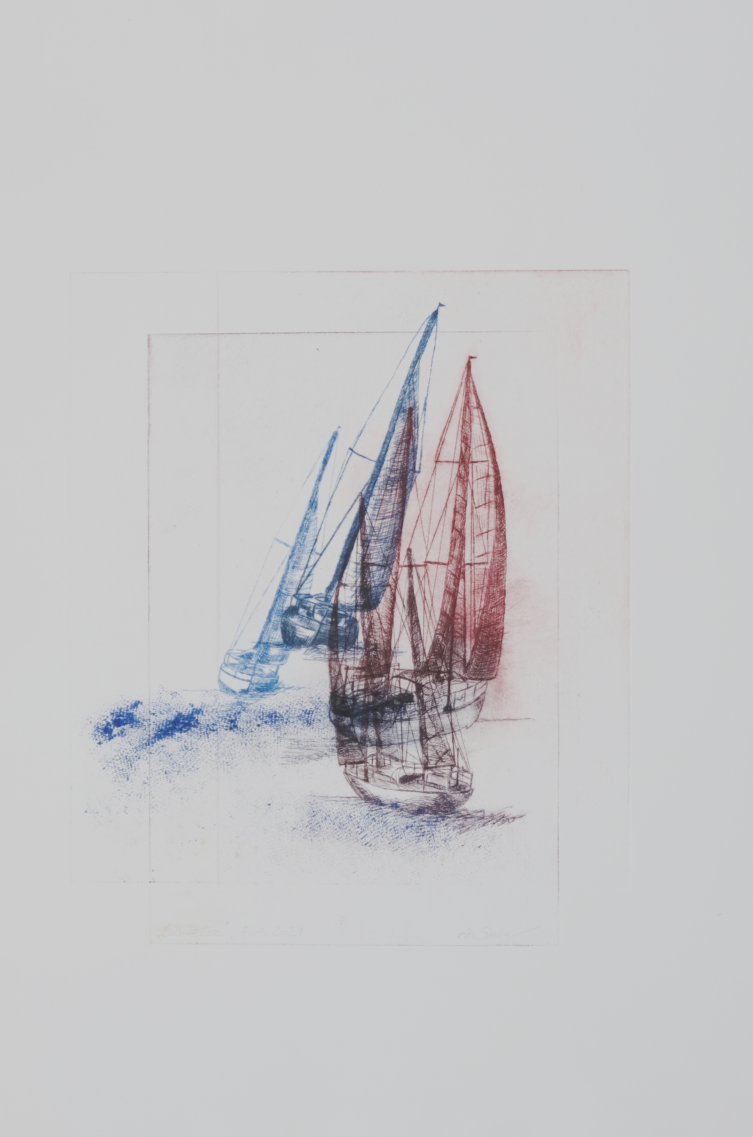 Serie "Segelboote" Kaltnadelradierung, Druckgrafik