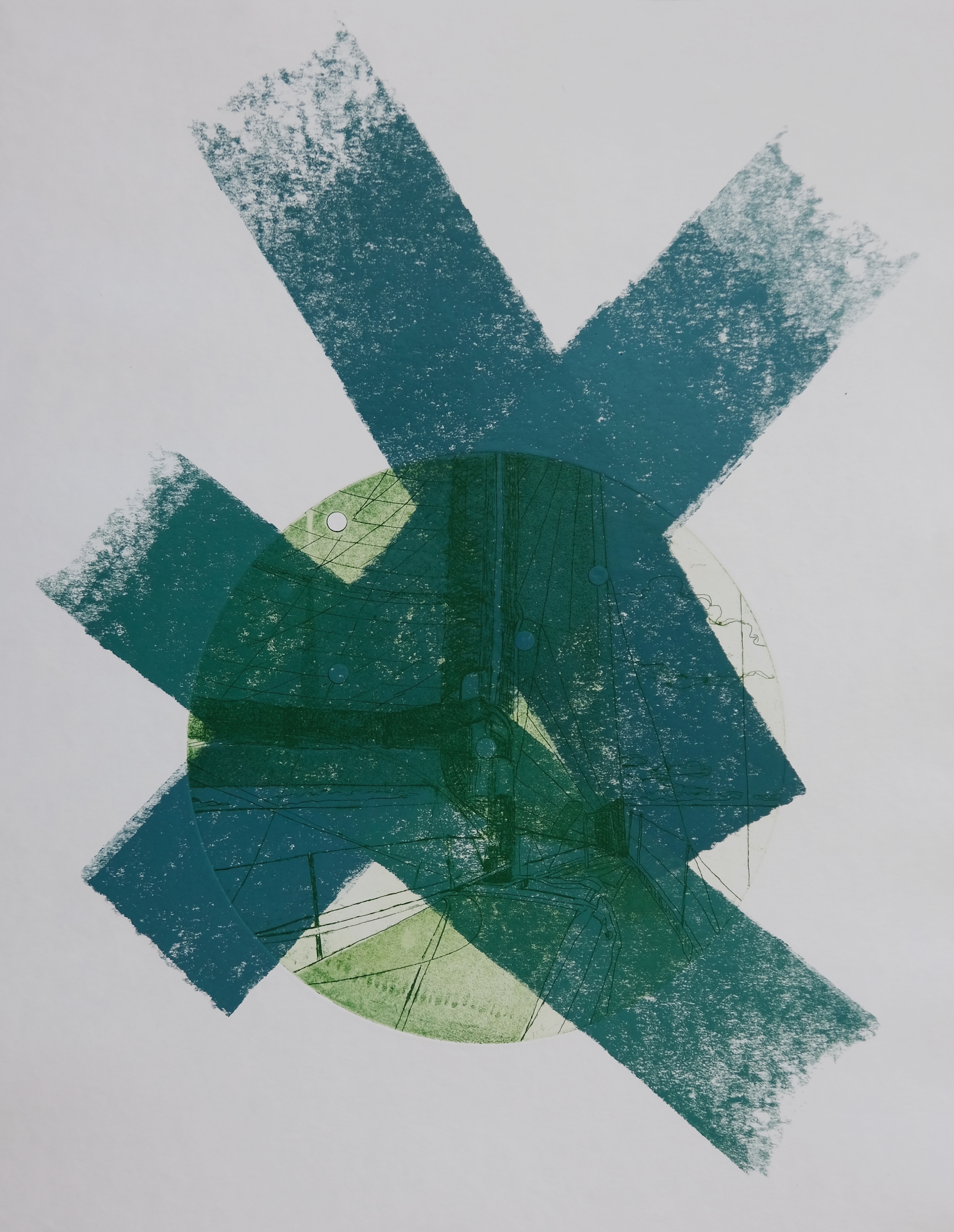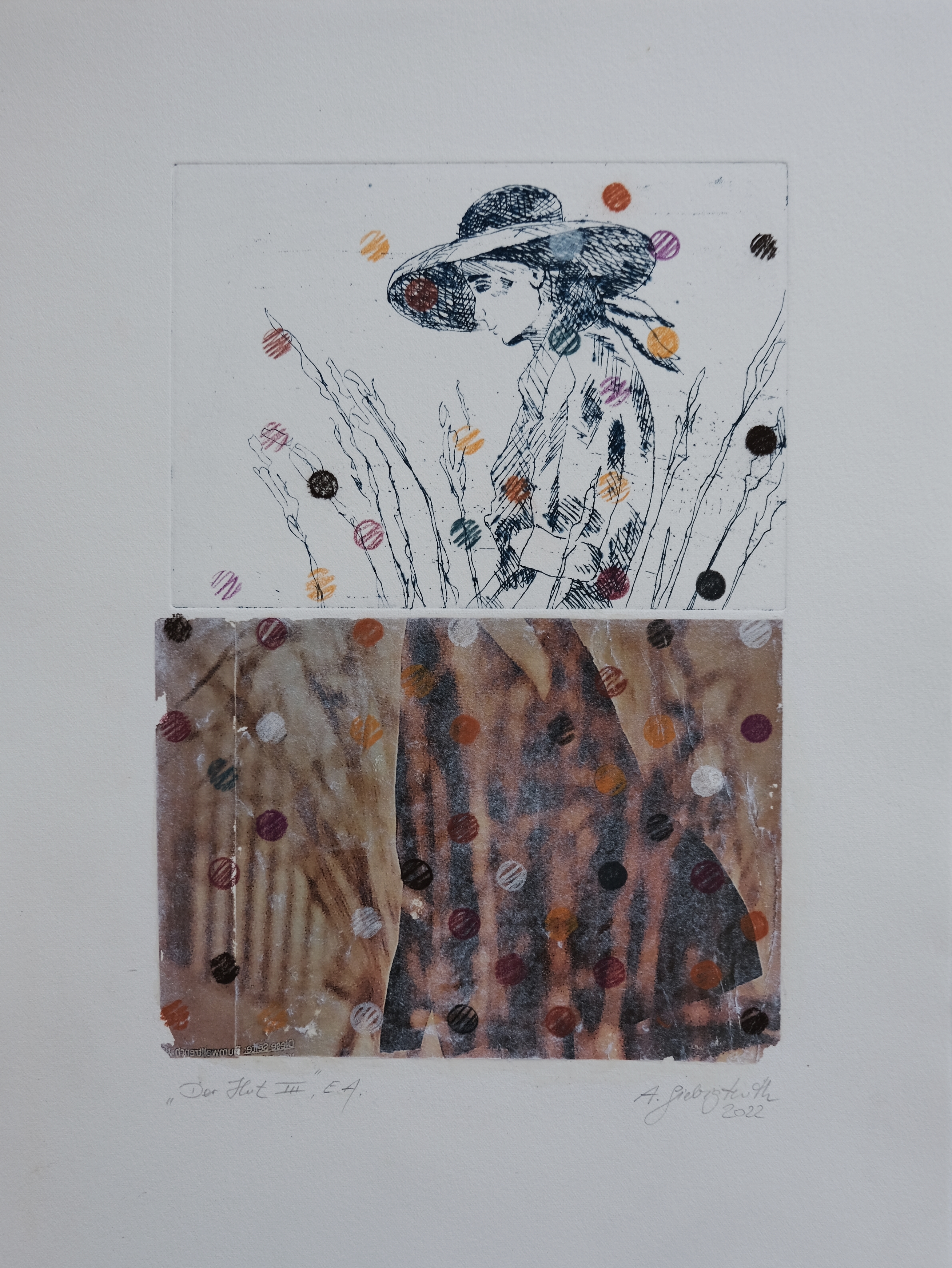Serie "Ausschnitt" Kaltnadelradierung, Collage Druckgrafik