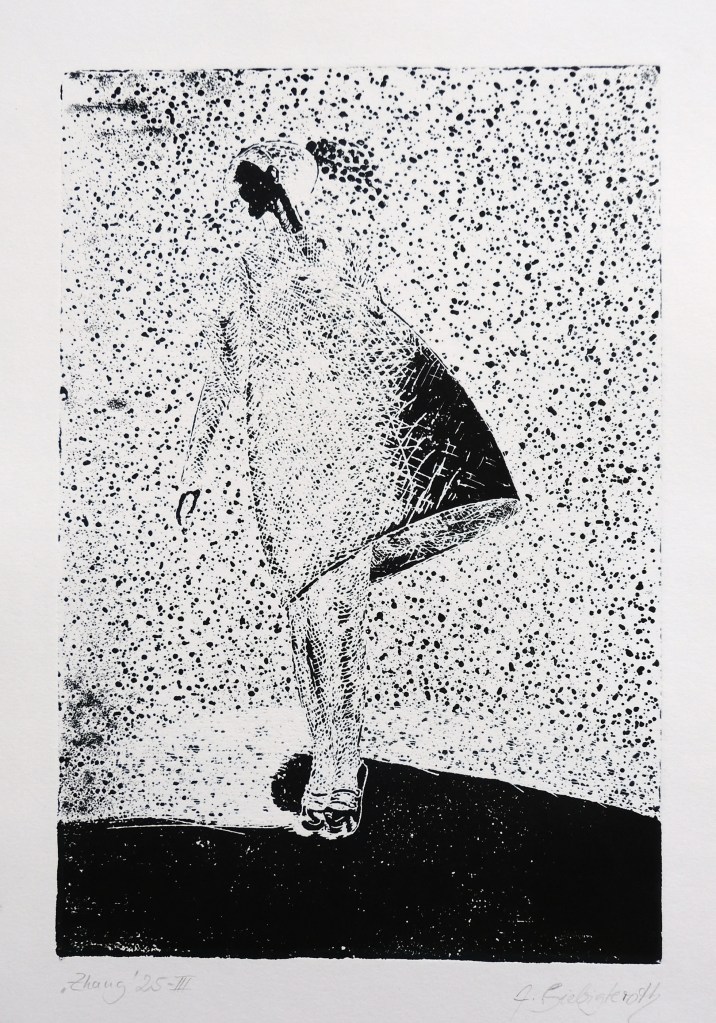 "Sprung" Kaltnadelradierung, Collage Druckgrafik