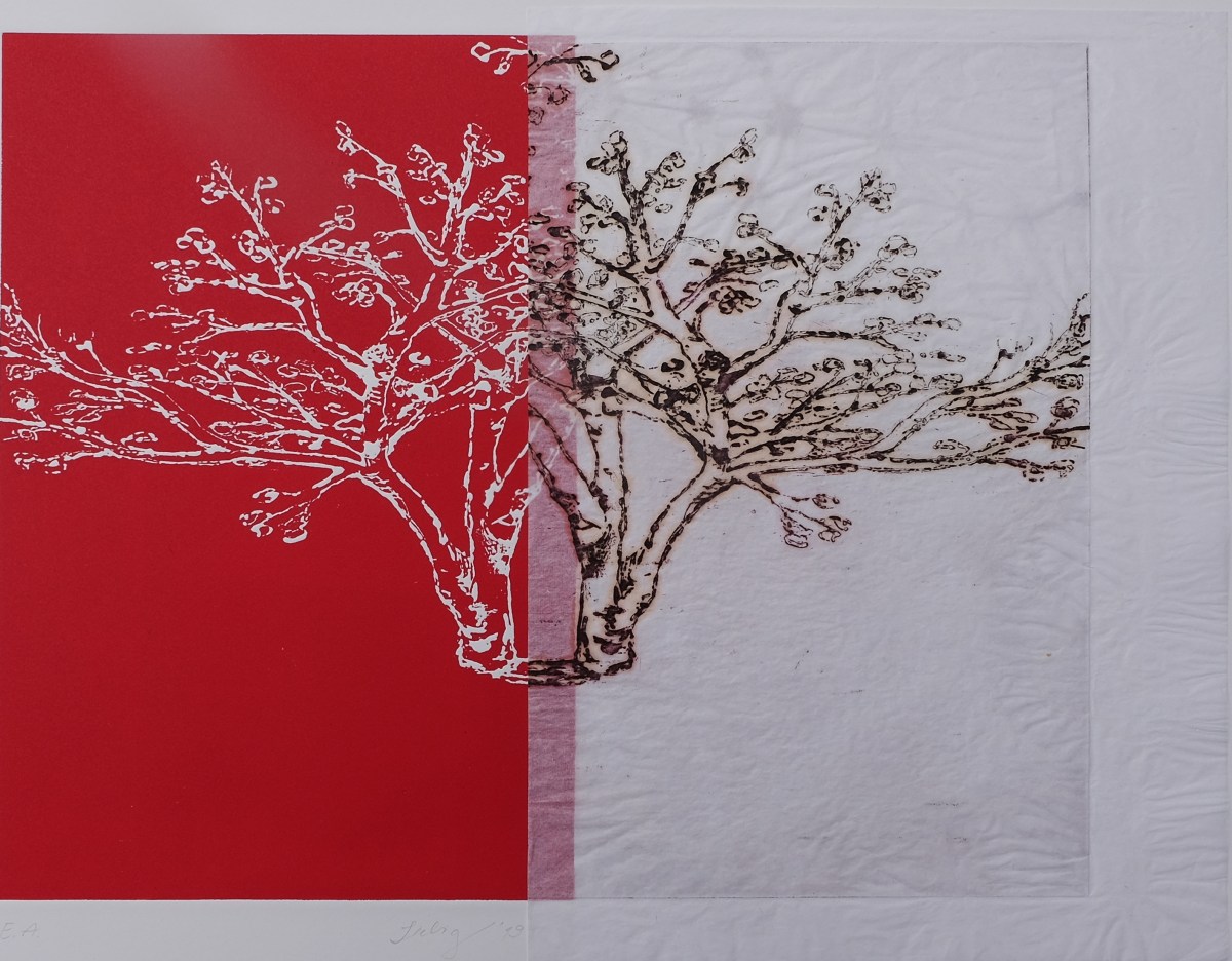 Im Garten Im Garten – IIa Druckgrafik, 2019, E.A. Reservage, Druckplatte 40 x 30 cm, Hochdruck/Tiefdruck 210g Zerkall Druckpapier 65 x 50 cm, Japanpapier 21 x 30 cm