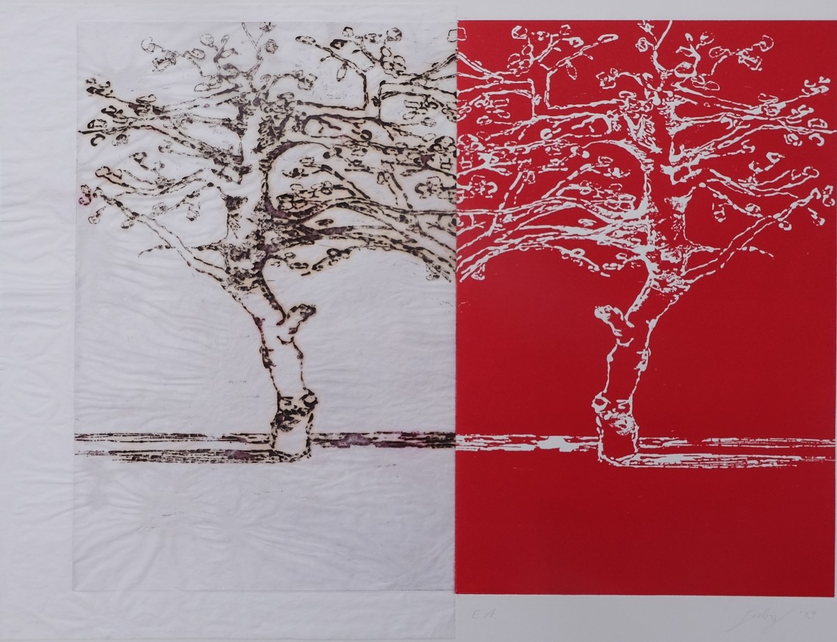 Im Garten Im Garten – IIb Druckgrafik, 2019, E.A. Reservage, Druckplatte 40 x 30 cm, Hochdruck/Tiefdruck 210g Zerkall Druckpapier 65 x 50 cm, Japanpapier 21 x 30 cm