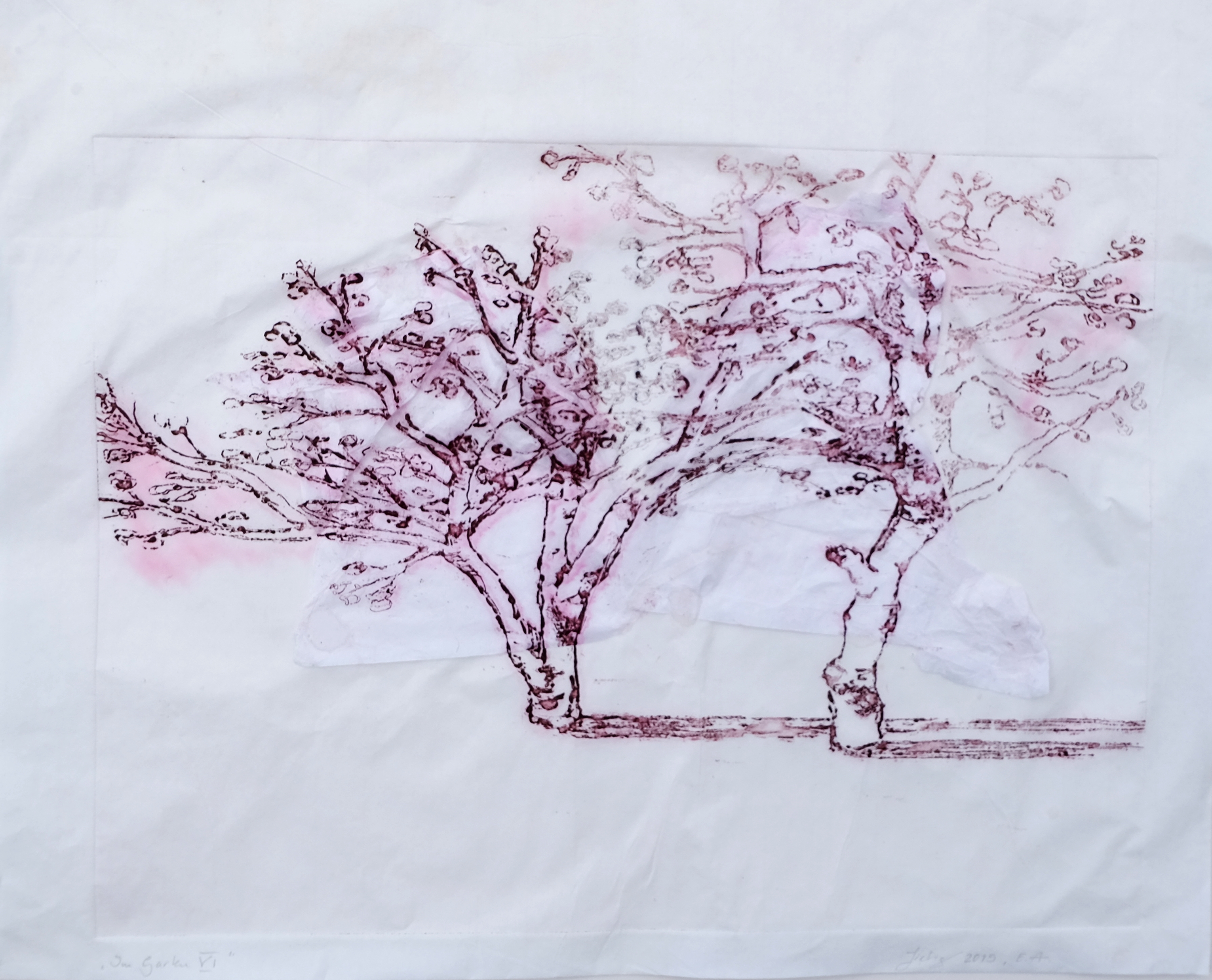 Im Garten-VI Im Garten – VI Druckgrafik, 2019, E.A. Reservage, Druckplatte 40 x 30 cm, Tiefdruck Seidenpapier 46 x 42 cm