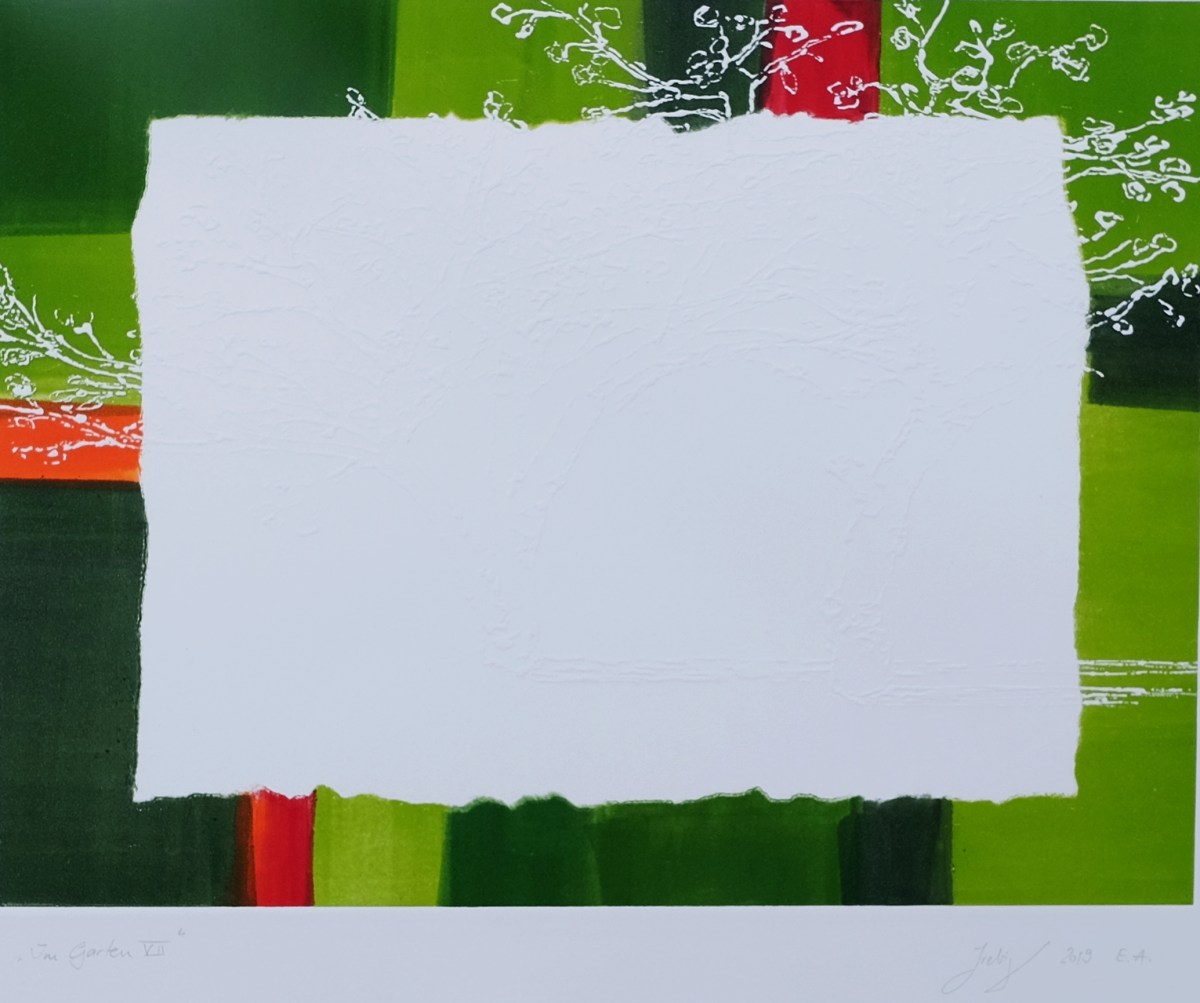 Im Garten-VII Im Garten – VII, Druckgrafik, 2019, E.A. Reservage, Druckplatte 40 x 30 cm, Hochdruck/Prägedruck 210g Zerkall Druckpapier 65 x 50 cm