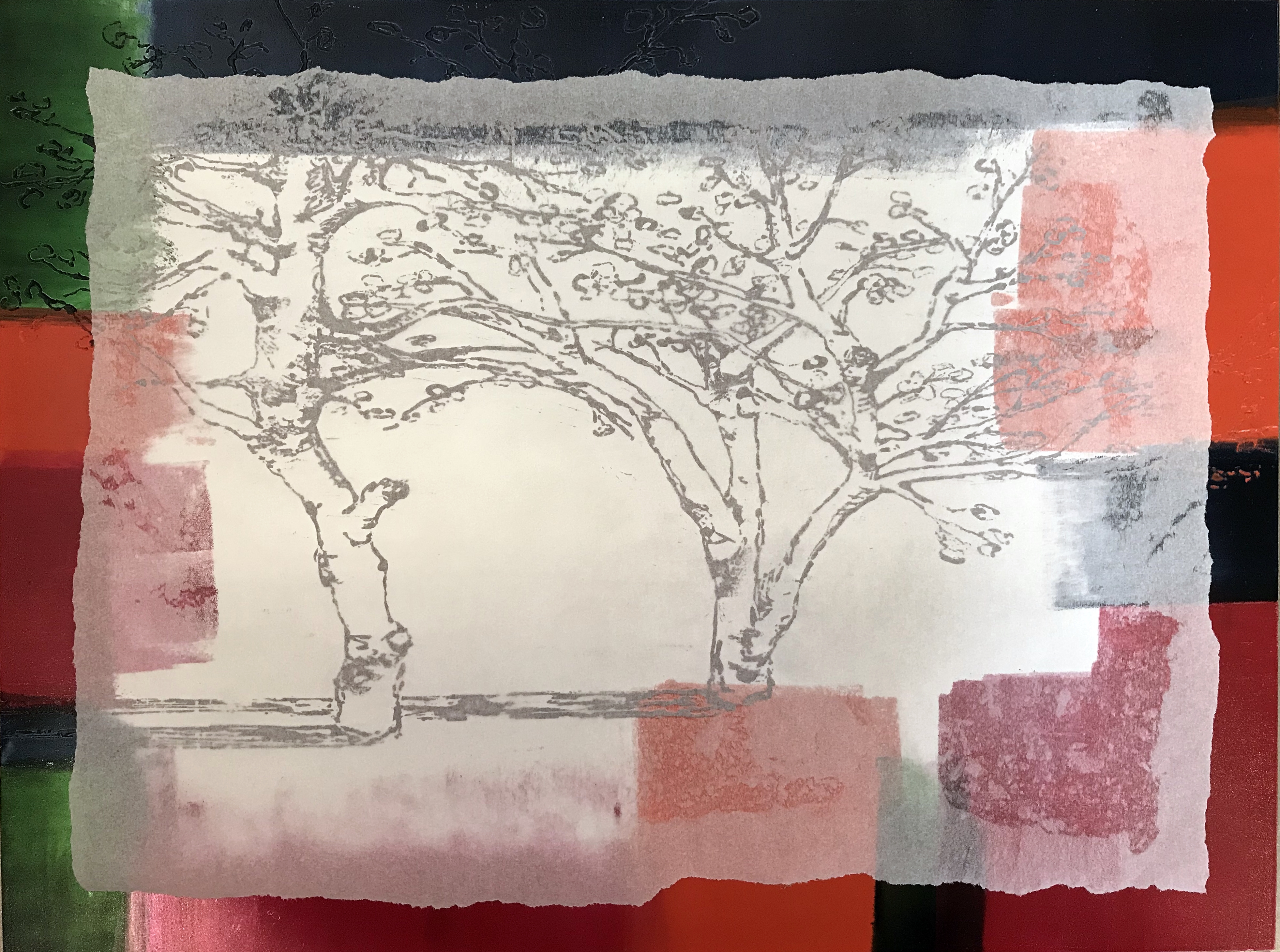 Im Garten_Druckplatte-Seidenpapier Druckplatte eingefärbt vor Druckvorgang Reservage, Druckplatte 40 x 30 cm, Hochdruck/Prägedruck