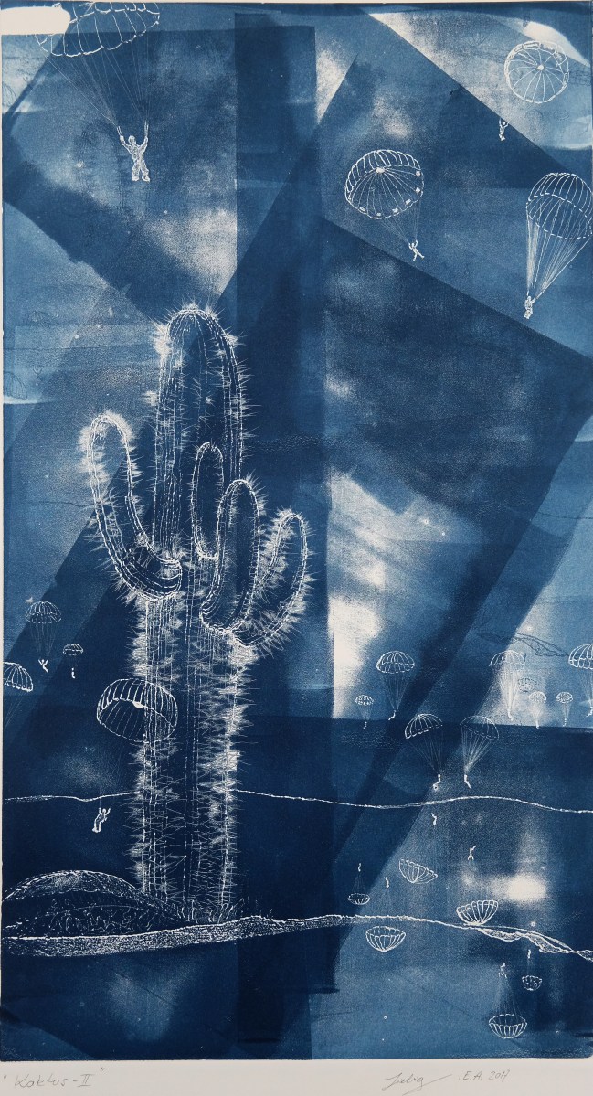 Kaktus-II Kaktus-II Kaltnadelradierung, Druckplatte 30 x 55 cm Hochdruck, Indigo, Druckpapier 300 g, 50 x 65 cm