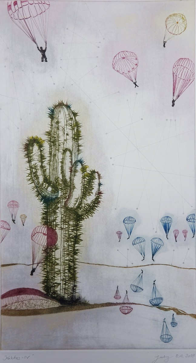 Kaktus-IV Kaktus-IV Kaltnadelradierung, Druckplatte 30 x 55 cm Tiefdruck, farbig, Druckpapier 300 g, 50 x 65 cm, mit Graphit