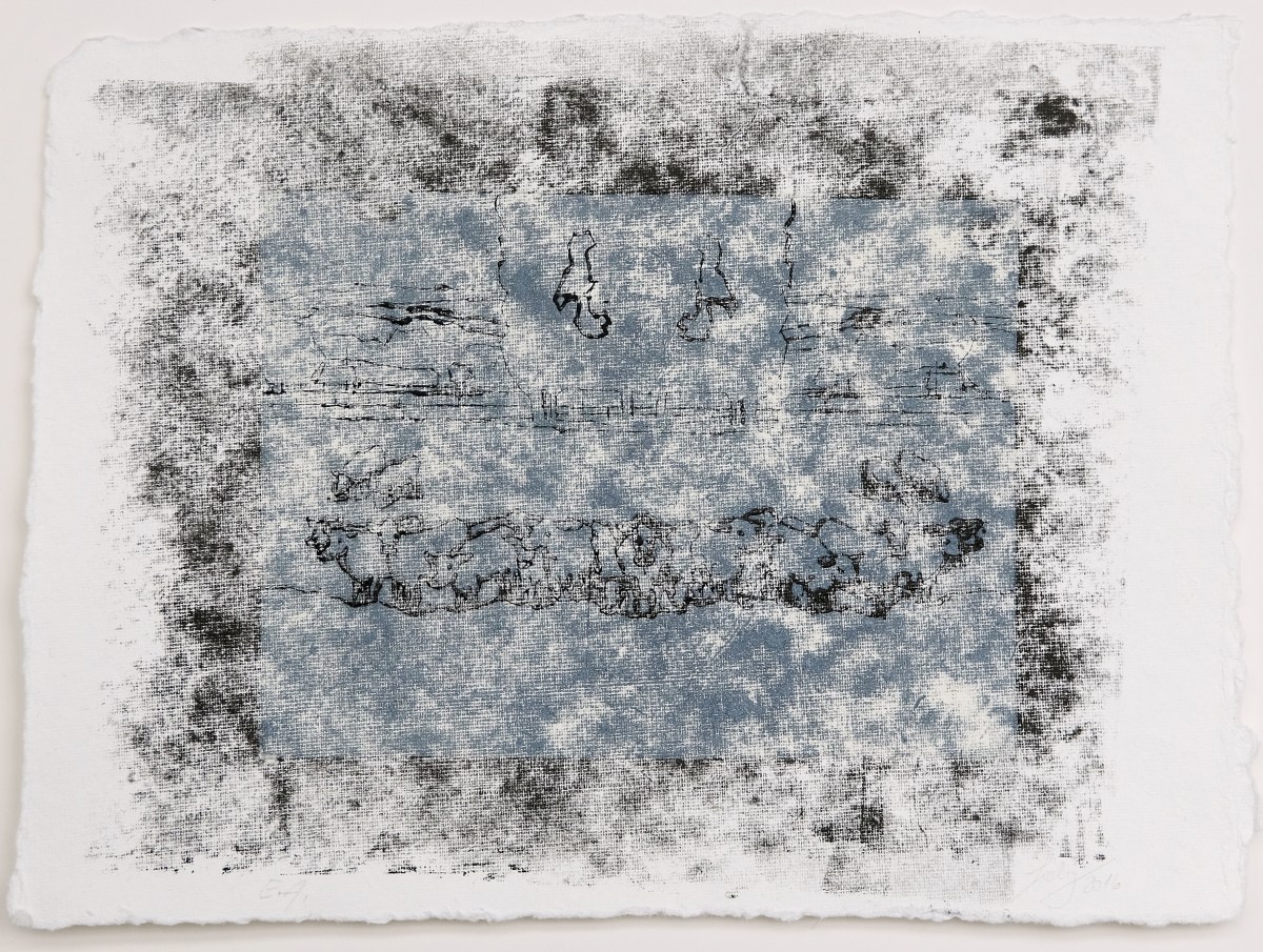 Kühe-VII Kühe-VII 8/2016, E.A. Radierung, Tiefdruck, Dècalcomanie, Druckbereich 20 x 15 cm, handgeschöpftes Papier, 30 x 23 cm, Druckgrafik 250,- €, gerahmt 300 €