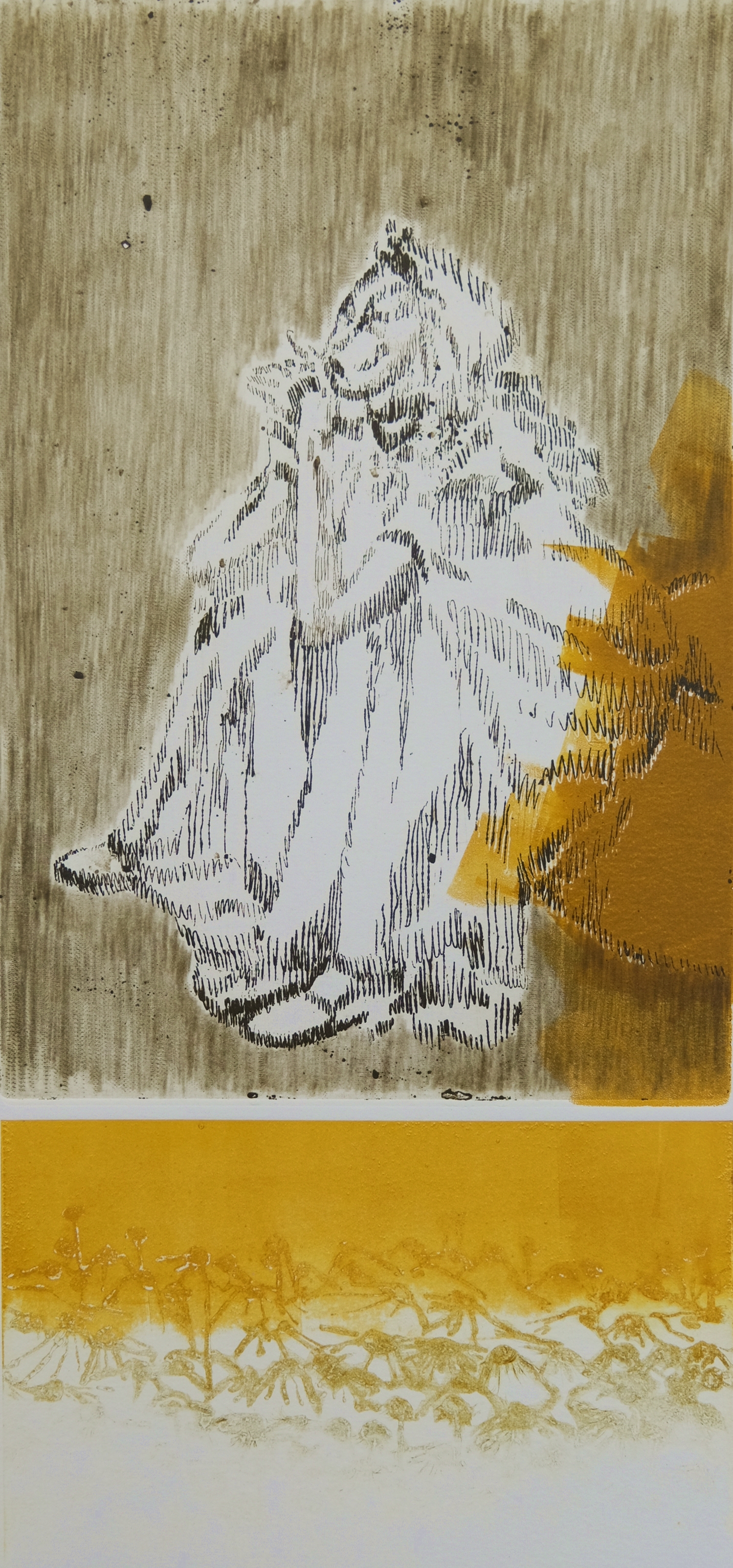 Mehlsack-II / Silberwurz „Mehlsack-II“ / „Silberwurz“ E.A. 2020 Radierung, Mezzotinto „Silberwurz“ Reservage Hoch-Tiefdruck Druckplatten 20 x 30 cm / 20 x 15 cm Druckpapier 38 x 57 cm