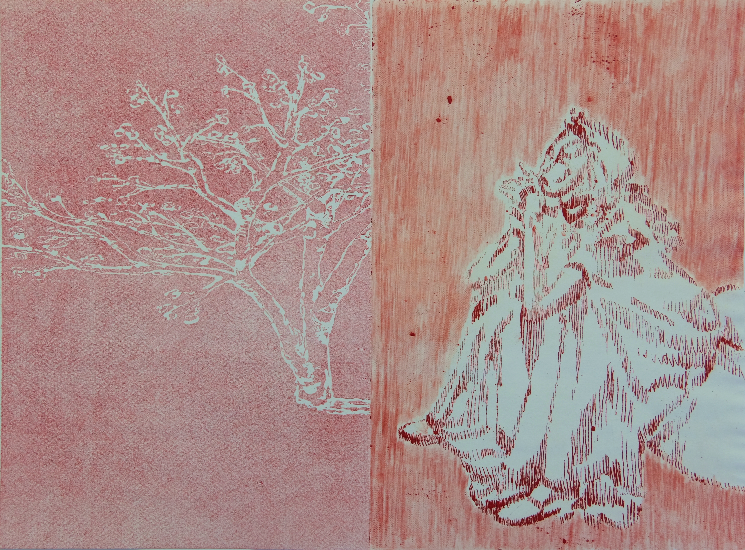 Mehlsack / Im Garten „Mehlsack“ / „Im Garten“ E.A. 2020 Radierung „Im Garten“ Reservage Hoch-Tiefdruck Druckplatten 20 x 30 cm / 40 x 30 cm Druckpapier 40 x30 cm