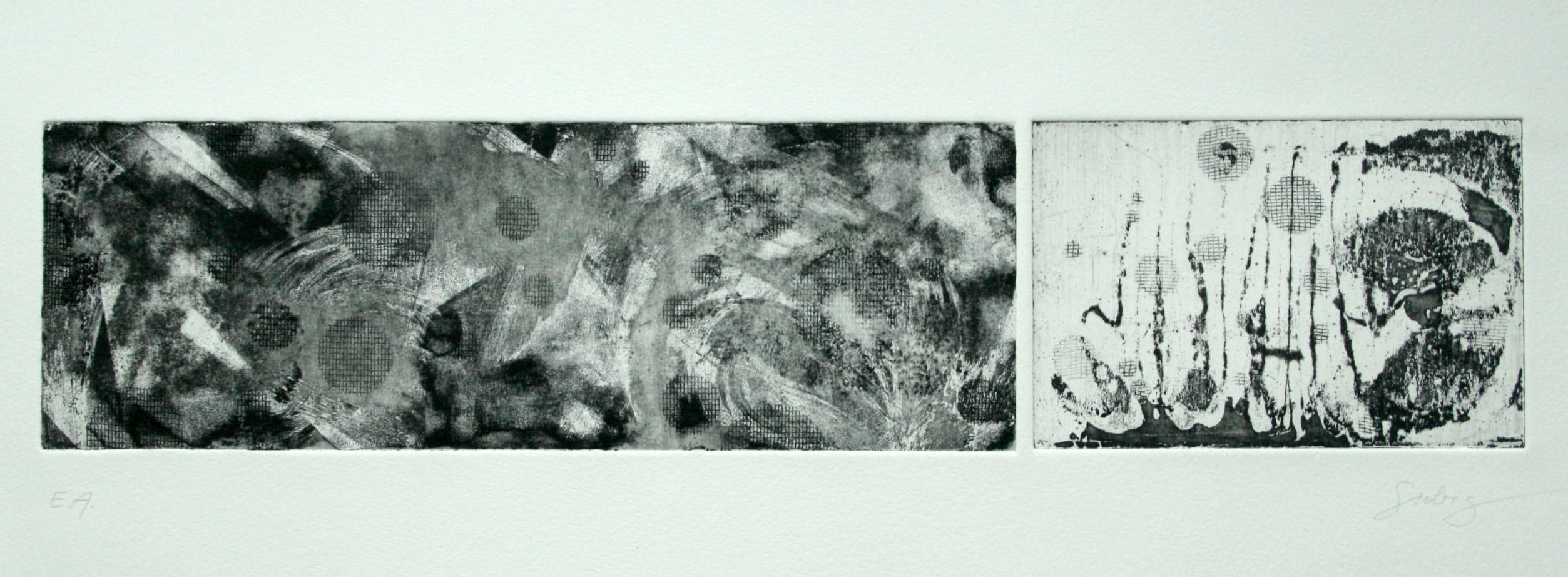 R 1 R 1 2012, E.A. Radierung, Nernis mou, Tiefdruck Druckbereich 15 x 10 cm / 30 x 10 cm, Büttenpapier 350 g, 57 x 21 cm 250 Euro
